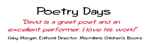 David is popular poet and performer who is published in more than 100 children's books. He works nationally in schools and makes poetry alive and accessible. Click here to read more about David Harmer. A typical day includes a lively, fun-packed performance to all or part of the school. This is followed by workshops with individual classes or groups. David works alongside teachers to help pupils develop their own work, writing poetry for the page or large group performance-based pieces. There is an emphasis on enjoyment and fun, exploring the enriching possibilities that writing offers everyone. Some of David’s latest publications include: As a Writer: